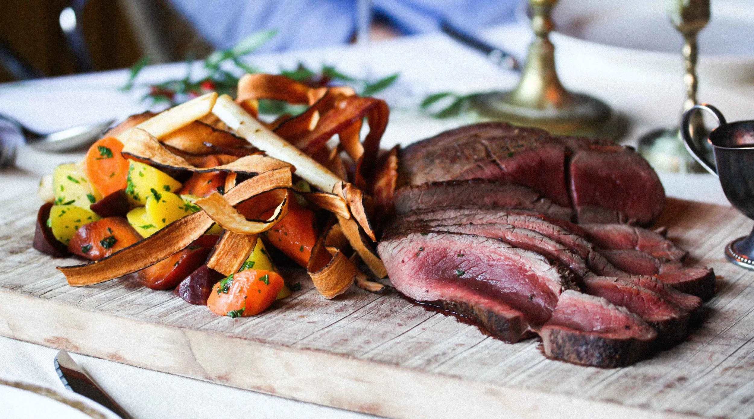 Salade van geroosterde en gekookte bieten met Texelse schapenkaas en wortelvinaigrette